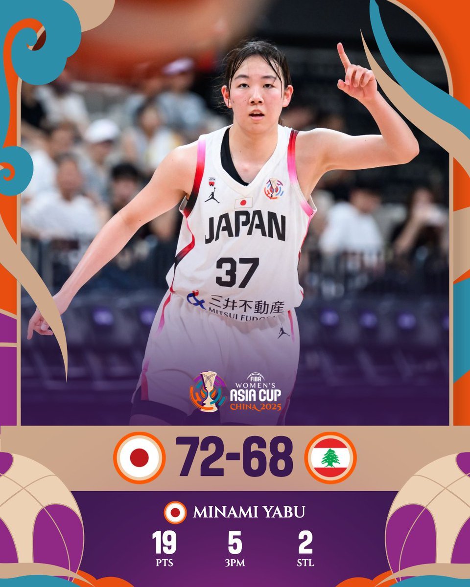 末节黎巴嫩打全场紧逼,曼苏尔反击缩小到4分,曼苏尔撤步三分三不沾,曼苏尔突破造犯规两罚全中核心阿克勒终于被换上。曼苏尔2+1后缩小到1分,高田真希造犯规两罚命中,薮未奈海反击命中再度拉开到5分。薮未奈海再度关键三分,黎巴嫩三分不中,法耶德造犯规,宫泽夕贵三分命中,日本五秒违例,黎巴嫩24秒,宫泽夕贵踩线,阿克勒关键三分,曼苏尔犯规,渡边敷来梦关键球命中,阿克勒造犯规1罚命中曼苏尔拼下前场篮板1+2缩小到2分,只剩下0.1秒犯规田中心两罚全中,比赛没悬念了。