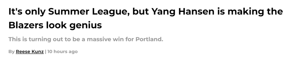 2025-07-14 11:10北京时间7月14日,开拓者队记Reese Kunz撰文谈到杨瀚森,他指出虽然现在只是夏季联赛,但杨瀚森的表现已经让开拓者的决策看上去显得极具远见。这对波特兰而言,正逐渐成为一场意义重大的胜利。以下是Kunz的报道——