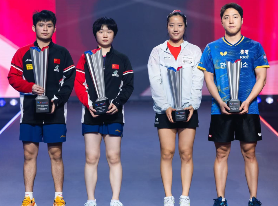 双打方面,混双林诗栋/蒯曼(WTT美国大满贯赛冠军)、女双王曼昱/蒯曼、男双勒布伦兄弟(WTT美国大满贯赛亚军)继续蝉联第一,而在美国获得混双亚军的林钟勋/申裕斌升至世界第二,世乒赛三连冠王楚钦/孙颖莎因为没有参加本站比赛,排名下滑至第三。
