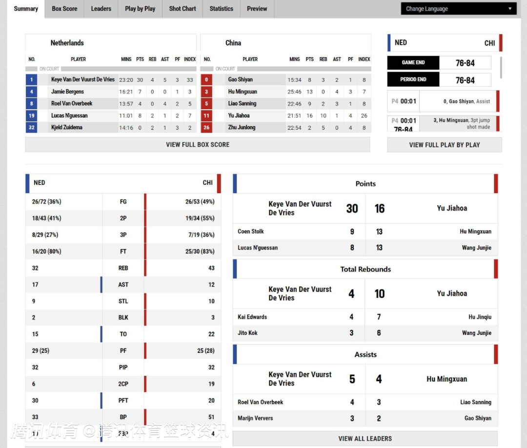 2025-07-16 09:40北京时间7月16日,今天稍早前,中国男篮和荷兰男篮进行了一场热身赛,最终中国男篮以84-76击败对手,赛后官方的技术统计出炉。