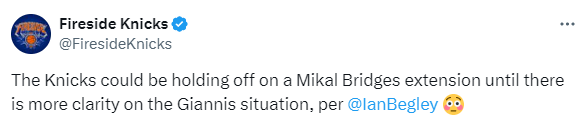 Ian Begley分析道:“布里奇斯至今未续约的原因之一在于,一旦完成续约,他在接下来的六个月内将无法被交易。而当下,字母哥的去留问题仍没有明确答案。”