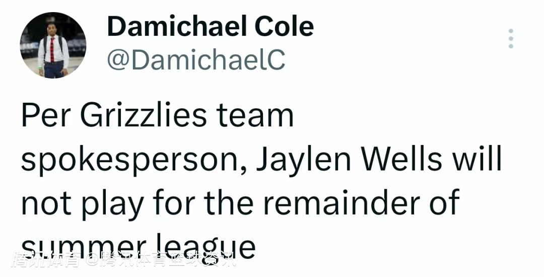 2025-07-18 06:20北京时间7月18日,据灰熊队方面透露,杰伦-威尔斯将不会参加剩余的夏季联赛。