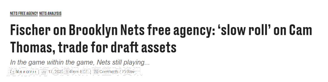 2025-07-18 06:50北京时间7月18日,据名记Jake Fischer的报道,有消息人士透露,篮网队在今年休赛期尚未就合同问题与队中受限制自由球员卡姆-托马斯进行实质性接触。