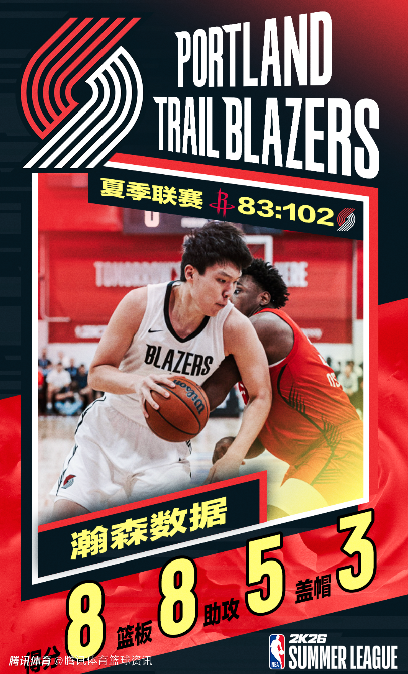 2025-07-18 11:20北京时间7月18日,NBA夏季联赛,开拓者以102-83击败火箭,此役杨瀚森继续首发,在21分钟的上场时间里,7投3中拿到8分8篮板5助攻3盖帽,正负值+19为全队次高。赛后杨瀚森接受了记者孟超的采访。