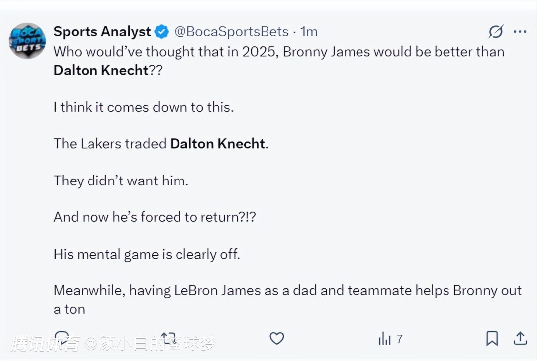美媒:谁能想到2025年,布朗尼比克内克特还要出色呢?湖人真的需要交易克内克特了,球队不需要这样的球员,他的心态明显出问题了。布朗尼队内有詹姆斯这样自律的标杆,他会发展的好。