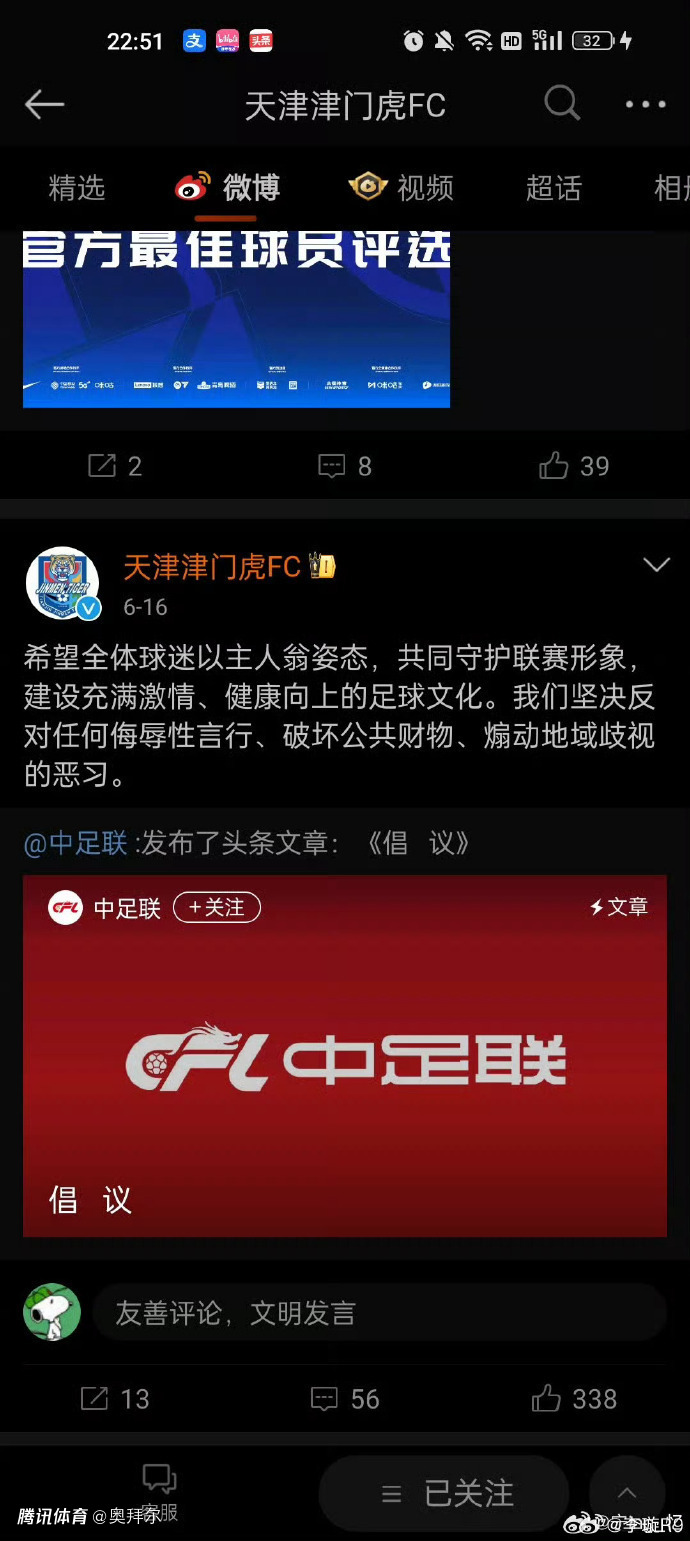 2025-07-19 07:40在主场战胜成都蓉城一战,天津津门虎球迷辱骂韦世豪家人,遭到了媒体人的批评。在被津门虎官方社媒辱骂之后,著名记者李璇回击,“现在知道天津球迷的素质为啥这么差了,天津津门虎官方微博特意带头出来骂人”。