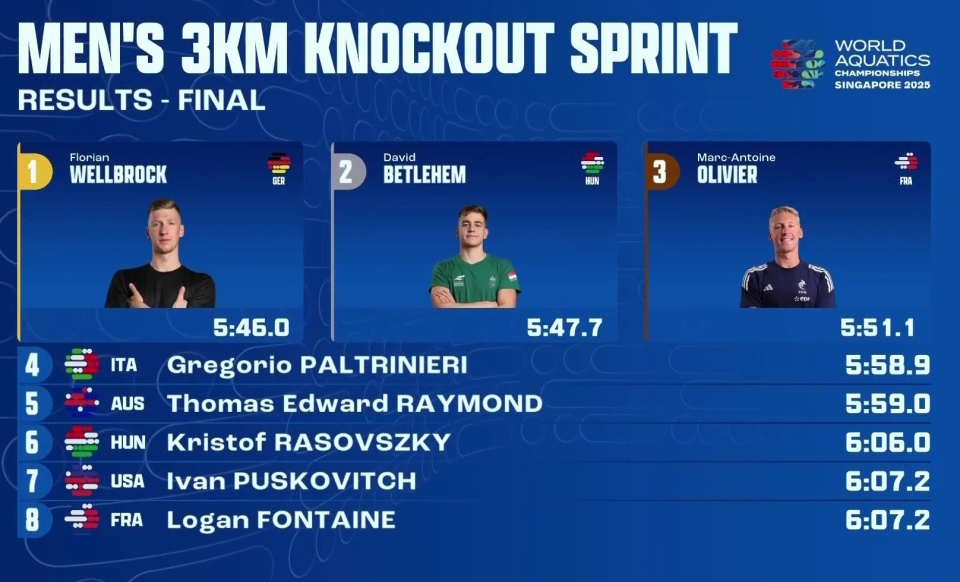 德国名将公开水域男子淘汰赛力压群雄!加冕新加坡世锦赛首位三冠王