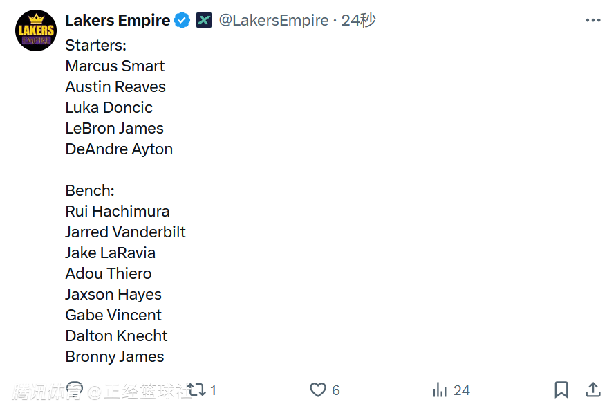 此外,目前湖人队的阵容名单如下: