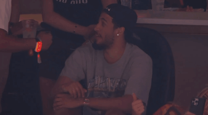 再度现身!哈利伯顿连续两天亲临WNBA全明星现场 观众席与朋友微笑交流