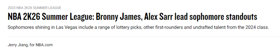 2025-07-21 06:10尽管2025年夏季联赛为新秀们提供了首次体验NBA赛事的机会,但2024年NBA选秀出身的二年级球员们也迎来了属于自己的闪光时刻。北京时间7月21日,NBA官网评出了五位在夏联表现突出的二年级球员——