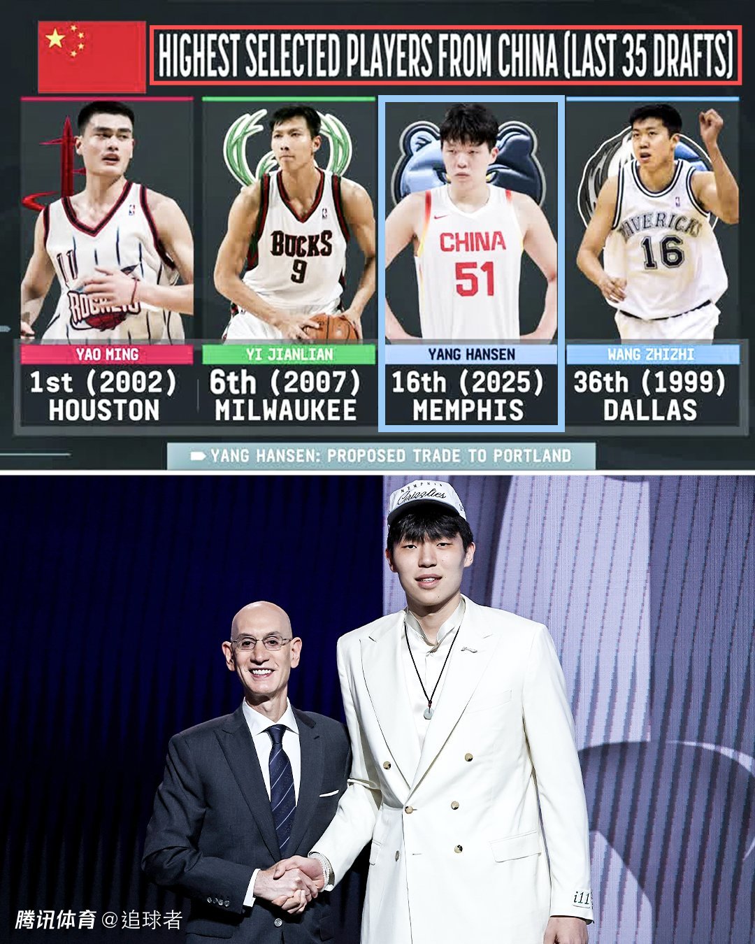 在今年NBA选秀大会上,开拓者通过交易选秀权从灰熊队获得16号签,然后用16号签选中坐在看台上的杨瀚森,杨瀚森成为姚明和易建联之后第三位在首轮被选中的中国球员,此后开拓者成为我国无数球迷心目中的头号主队。