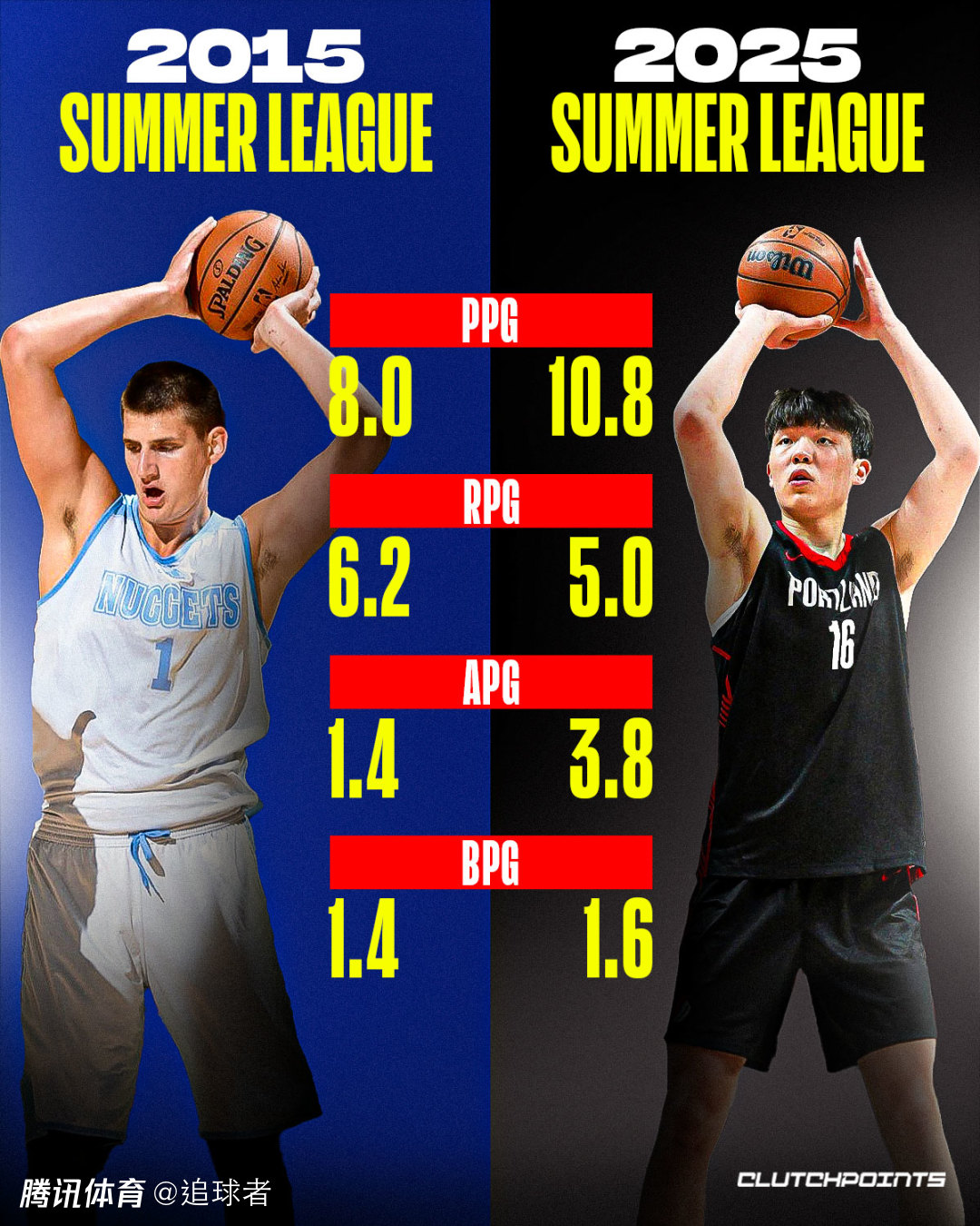 今年夏季联赛,杨瀚森代表开拓者出战了4场比赛,场均能够拿到10.8分5.3篮板3.8助攻2.3盖帽,美媒开始对比约基奇和杨瀚森的夏联数据,除了篮板之外,其他数据都占优。