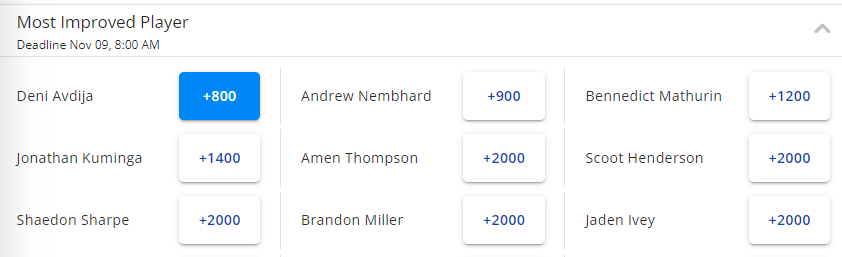 进步最快球员赔率