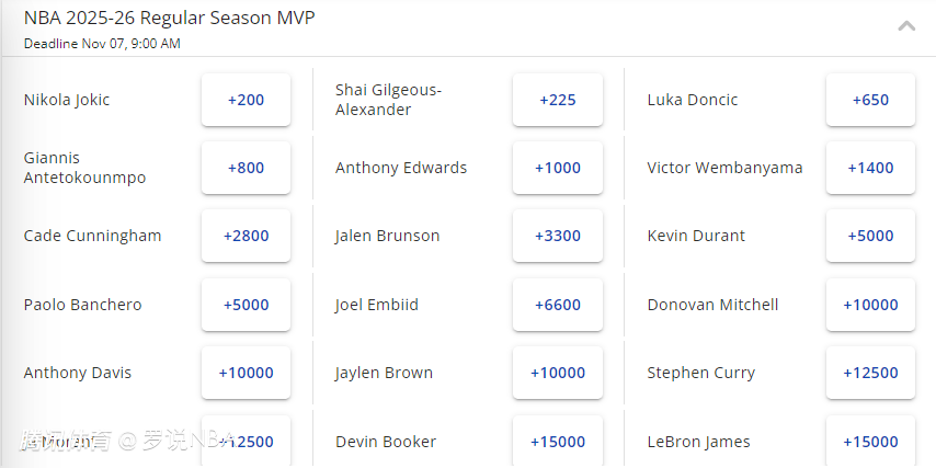 常规赛MVP赔率