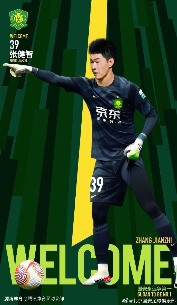 京媒:国安新门将张健智已抵青岛 00后前广州队门将有望迎首秀
