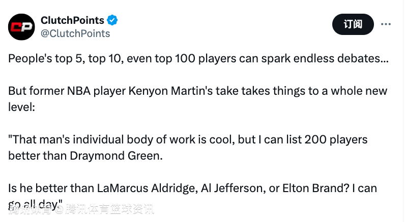 马丁表示:“追梦个人生涯履历是挺厉害,但我能列出200个比他更出色的球员,他比阿尔德里奇、艾尔-杰弗森或者布兰德强吗?我能一直这么举例下去。”