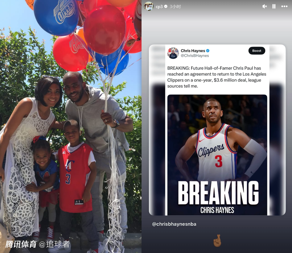 据悉,快船、湖人、雄鹿、太阳、黄蜂和魔术都有意引援保罗,最终保罗决定重返快船,他将在这里打完生涯最后一年;值得一一提的是,40岁的保罗也很开心,他已经通过社媒庆祝回归快船。