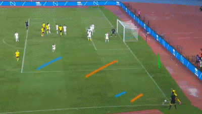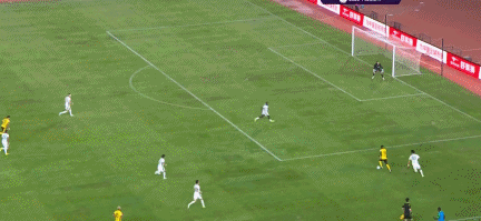 第116分钟,恩加德乌后场长传找到右路的曹永竞,曹永竞内切至禁区,连续晃开2名后卫的防守完成射门得分,北京国安2-1领先。