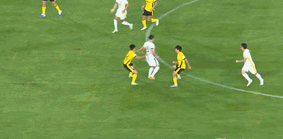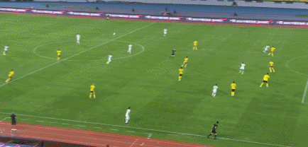 第21分钟,张玉宁在2名西海岸后卫的夹击下倒地,随后因伤无法坚持,被法比奥换下。