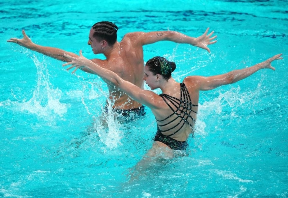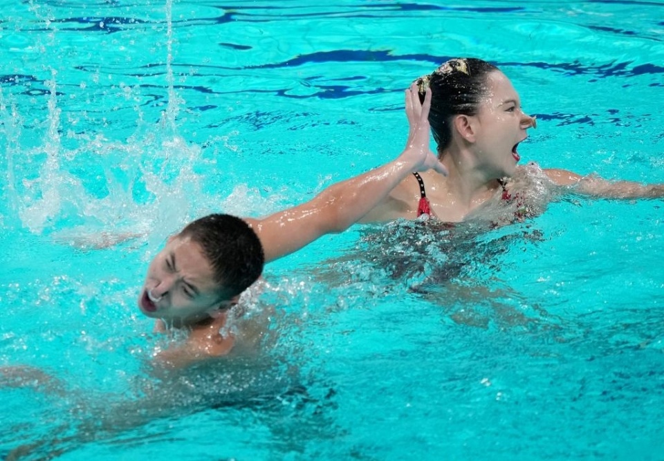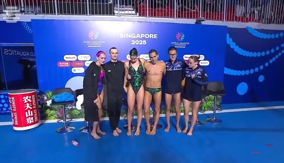 2025-07-25 12:10在刚刚结束的2025游泳世锦赛-花样游泳混双自由自选决赛里,首次参加世锦赛的中国组合郭牧也/刘津含,以256.8216排名第七。