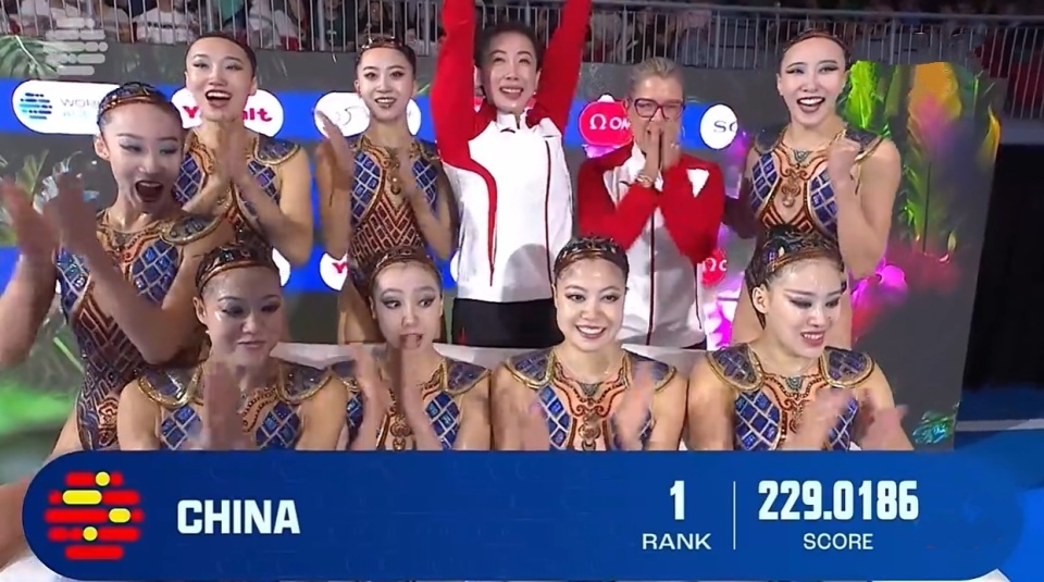世锦赛花游中国集体技巧“秦俑魂”威风夺冠!4金3银奖牌榜第一