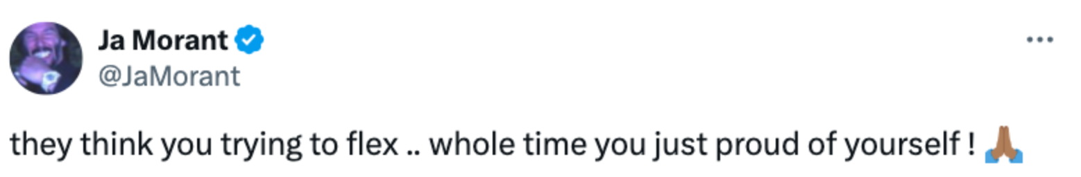 2025-07-27 11:30北京时间7月27日,莫兰特近日开启中国行,今天稍早前,他更新社媒写道:“他们以为你是在炫耀,其实你只是为自己感到骄傲!”
