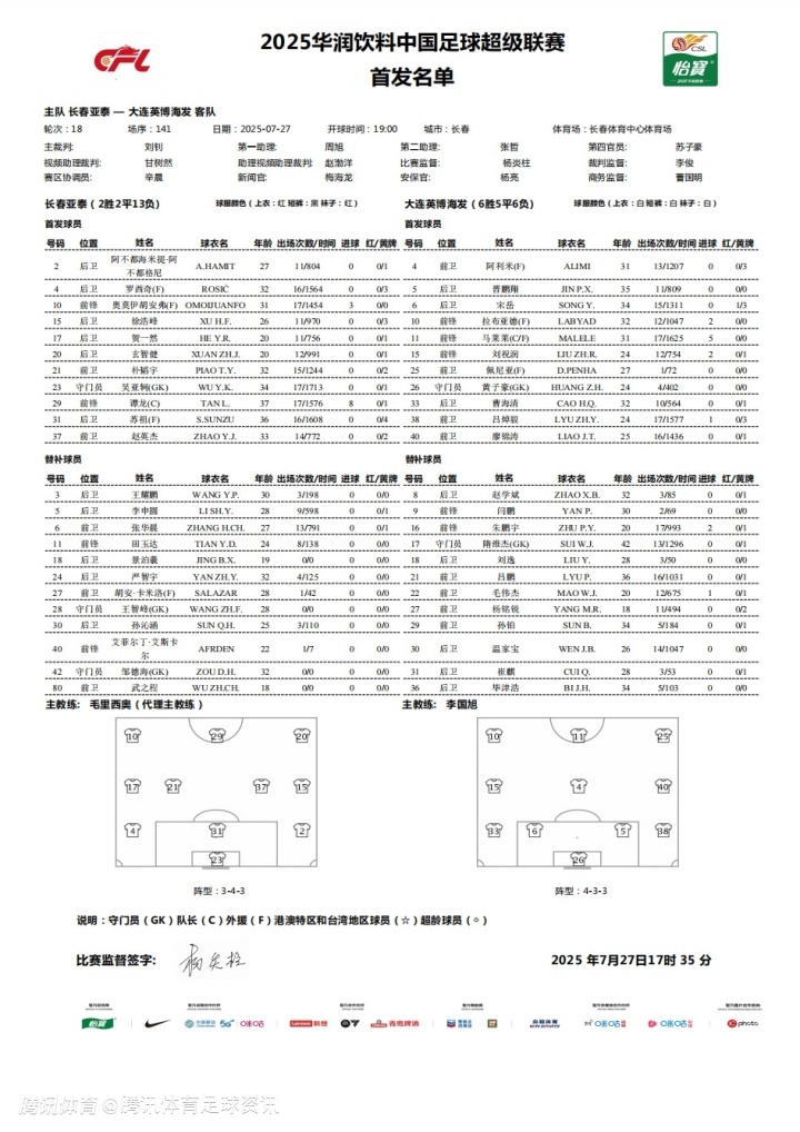 2025-07-27 18:00北京时间7月27日,今晚19:00,中超联赛第18轮焦点对决将在长春打响,长春亚泰将坐镇主场迎战大连英博。