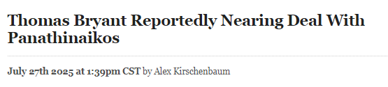 2025-07-28 06:20北京时间7月28日,据欧媒TeleSport报道,自由球员、步行者队替补中锋托马斯-布莱恩特即将达成一笔新协议,他将离开NBA,与希腊俱乐部帕纳辛奈科斯签约。