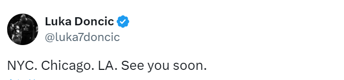 2025-07-28 07:30北京时间7月28日,湖人球星东契奇更新社媒,晒出了自己最新的行程,并配文写道:“纽约、芝加哥、洛杉矶,期待与你们相见!”
