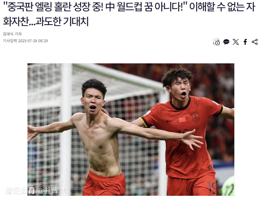 2025-07-28 11:10针对中国不少媒体长篇累牍报道中超年轻球员的崛起,韩国媒体《朝鲜体育》撰文表示,中国媒体动不动就将年轻球员吹嘘为“中国哈兰德”,中国足球如果改不掉自吹自擂的毛病,永难有出头之日。