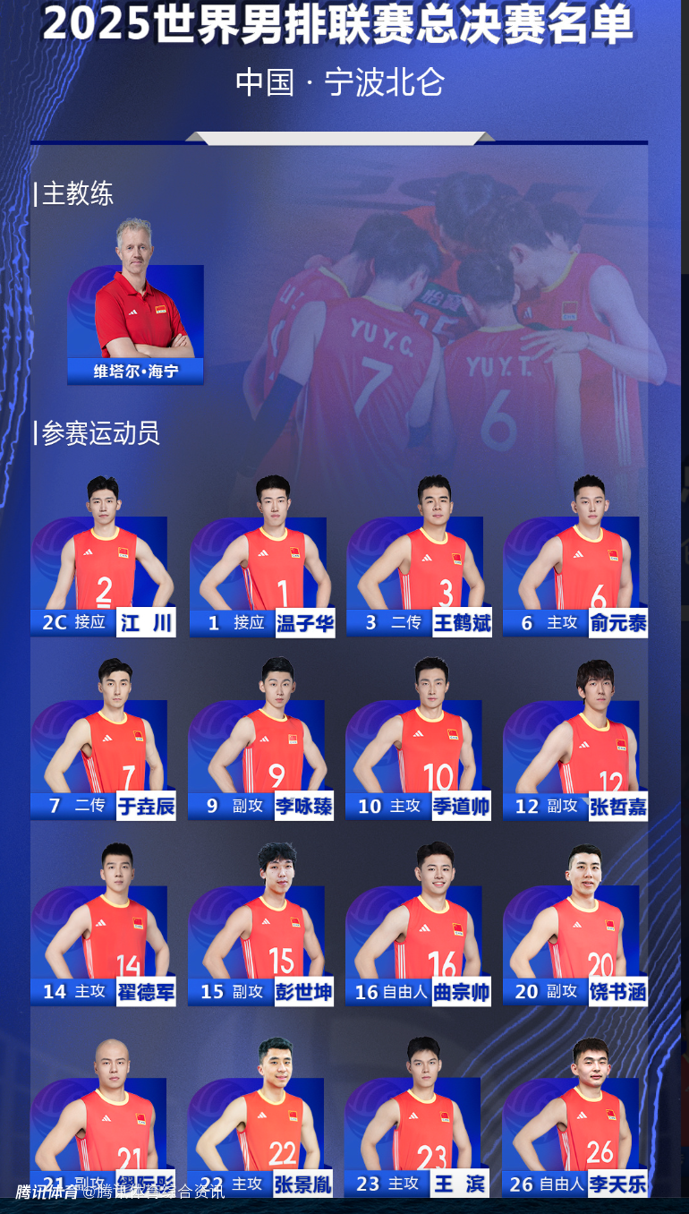 2025-07-28 16:00北京时间7月28日,中国排协公布了参加世界男排联赛总决赛的中国队大名单,季道帅、江川领衔。