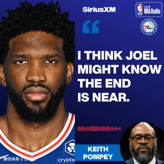 在播客节目中谈到了恩比德的情况,Keith Pompey表示:我认为乔尔(恩比德)可能知道他的终点即将来临(I think Joel Embiid might know the end is near),他正在向公众解释自己经历了什么,球员很少会主动告诉你他承受了多少痛苦,经历了多少磨难。