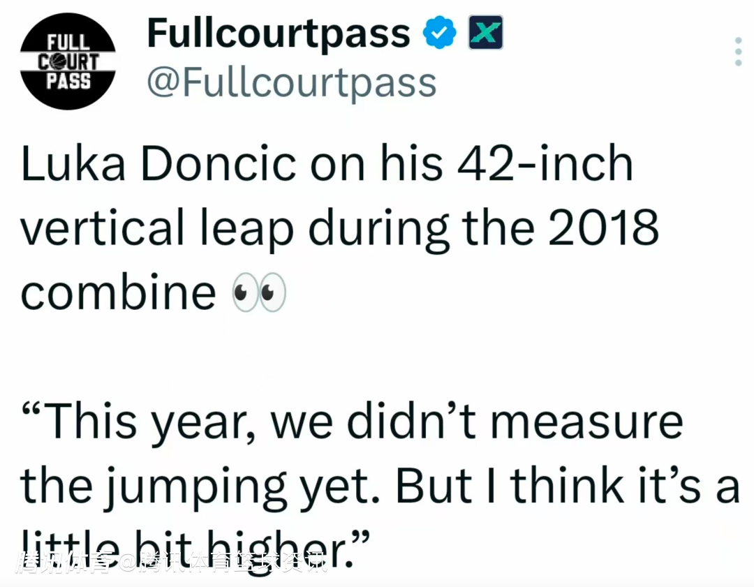 根据过往报道显示,东契奇在2018年联合试训中的垂直弹跳数据为42英寸。