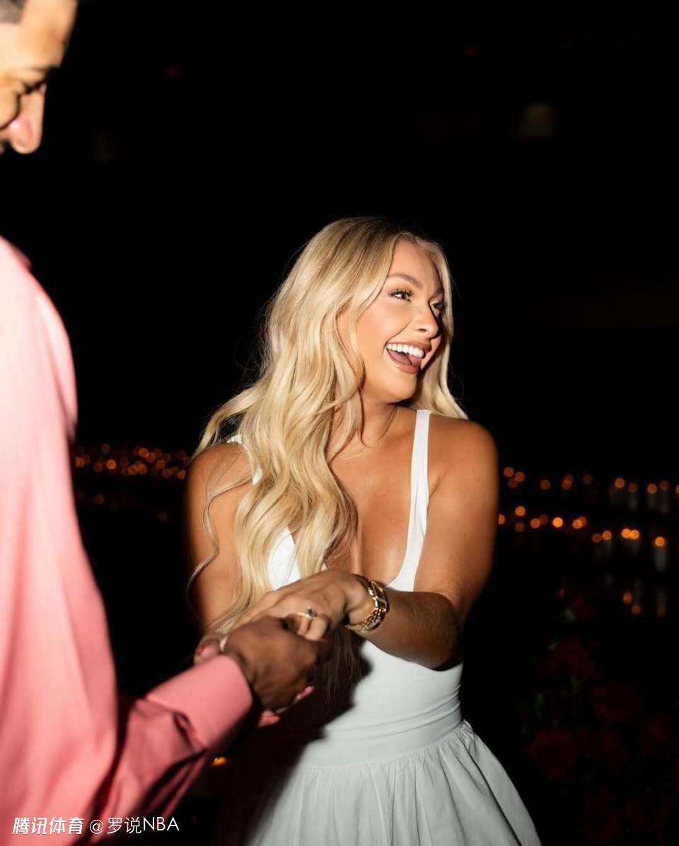 这位在2025年NBA总决赛第七场中跟腱撕裂的后卫,穿着保护靴,踩着滑板车来到场馆,单膝跪地求婚。两人身后有一块牌子写着“你愿意嫁给我吗”,地面上还撒满了玫瑰花瓣。两人自2019年在爱荷华州立大学相识后便开始交往。