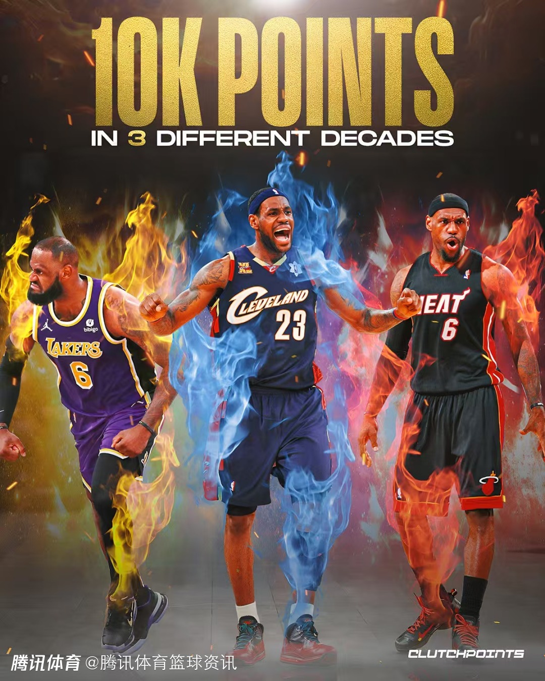 Clutchpoints表示,这意味着詹姆斯在三个不同的十年里,每个十年都砍下了超过10000分,这是NBA历史上从未有人达成过的成就。