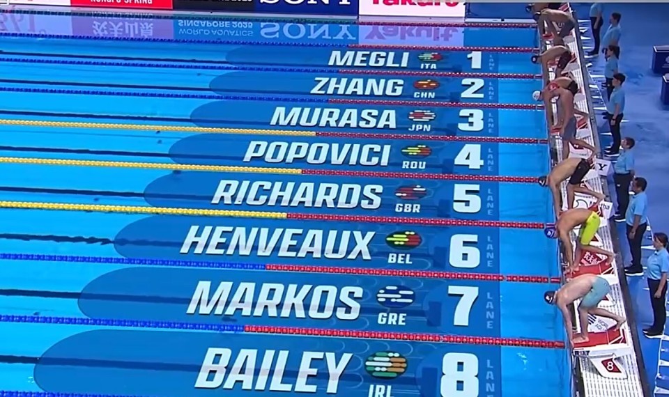 世锦赛男子200自半决赛:张展硕刷新PB,总排名第11无缘决赛