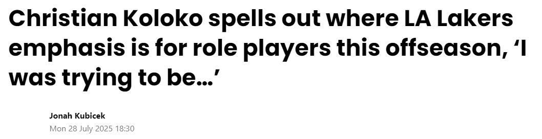 2025-07-29 08:20北京时间7月29日,湖人球员科洛科接受媒体采访,谈及湖人今夏对角色球员的培养重点。