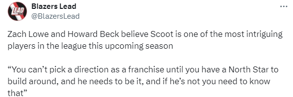 洛维表示:“亨德森是新赛季联盟中最引人关注的球员之一。作为一支球队,在找到可以围绕其建队的‘北极星’之前,你无法确定前进的方向。而他(亨德森)必须成为那个‘北极星’,如果他做不到,你也需要认清这一点。”