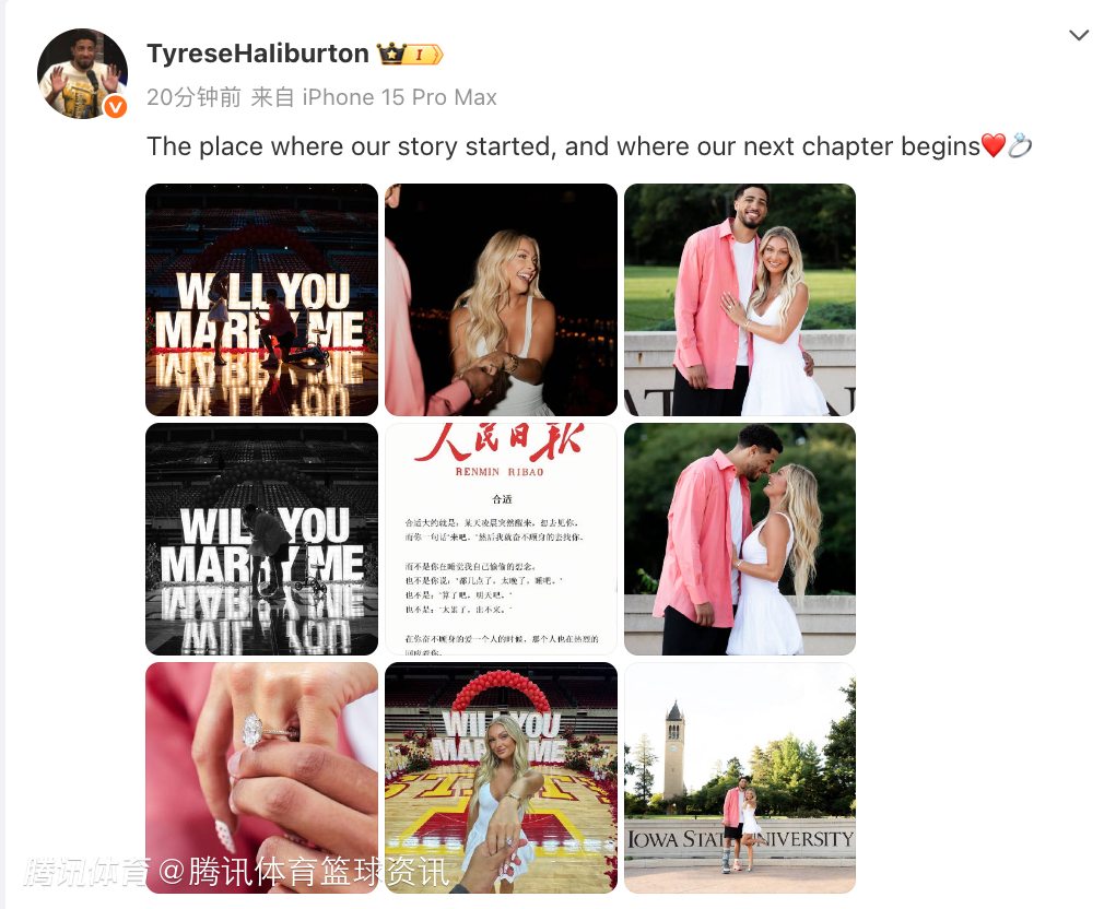 你小子懂浪漫!哈利伯顿求婚动态引用人民日报 将照片放在C位