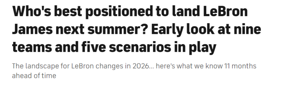 不过,事态的发展已注定一件事:詹姆斯将在2026年夏天成为自由球员。