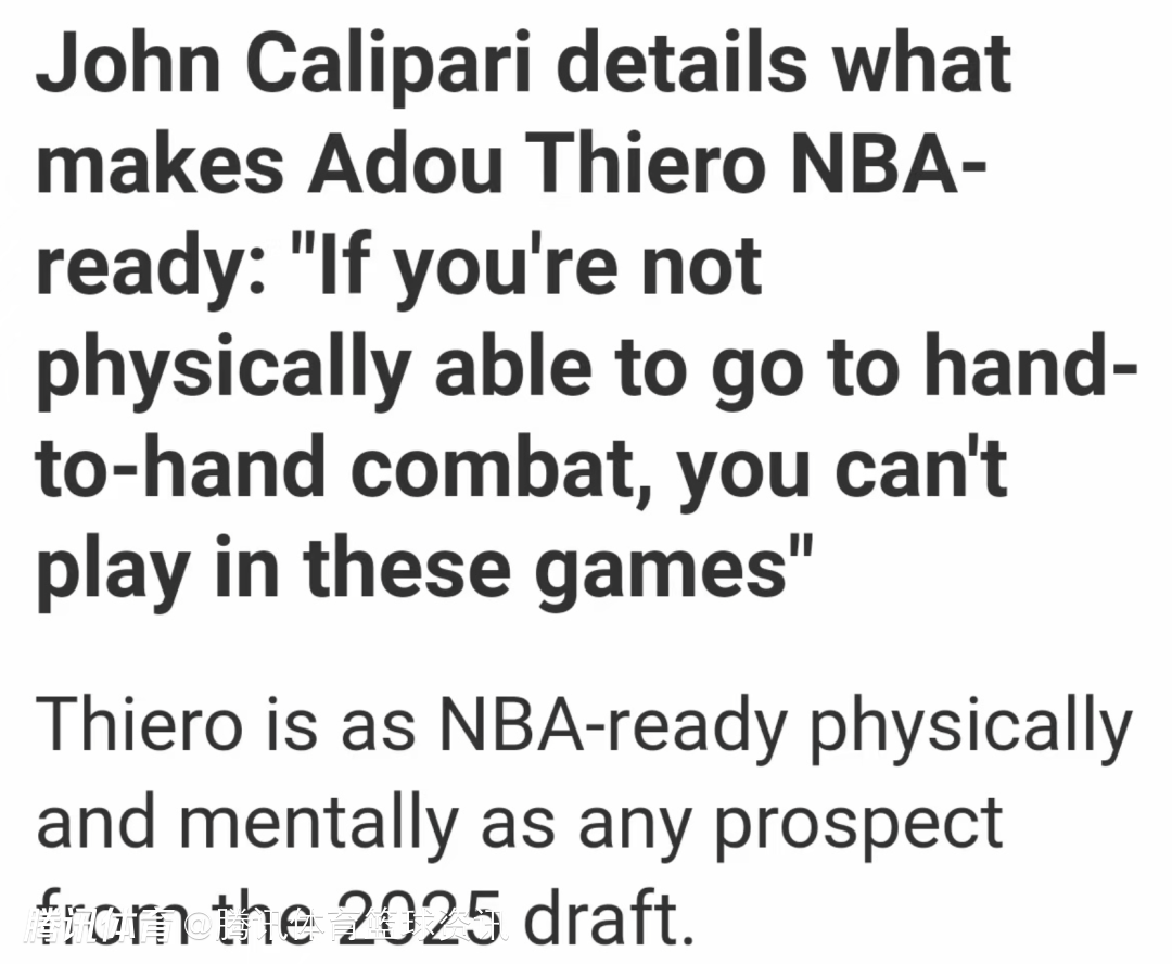 卡利帕里说道:“如果你现在关注NBA,关注这些季后赛,你就会知道,这里只需要真正的男子汉,NBA不欢迎‘男孩’。如果你在身体上无法进行近身对抗,无法在有人对你拉扯时继续比赛,无法在被两个对手猛烈夹击时抢下篮板,无法在被撞击两次后完成上篮,那你就无法在这些比赛中立足。”