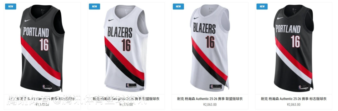 开拓者官方商店上架杨瀚森球衣:分两款不同样式 售价为1173元和2063元