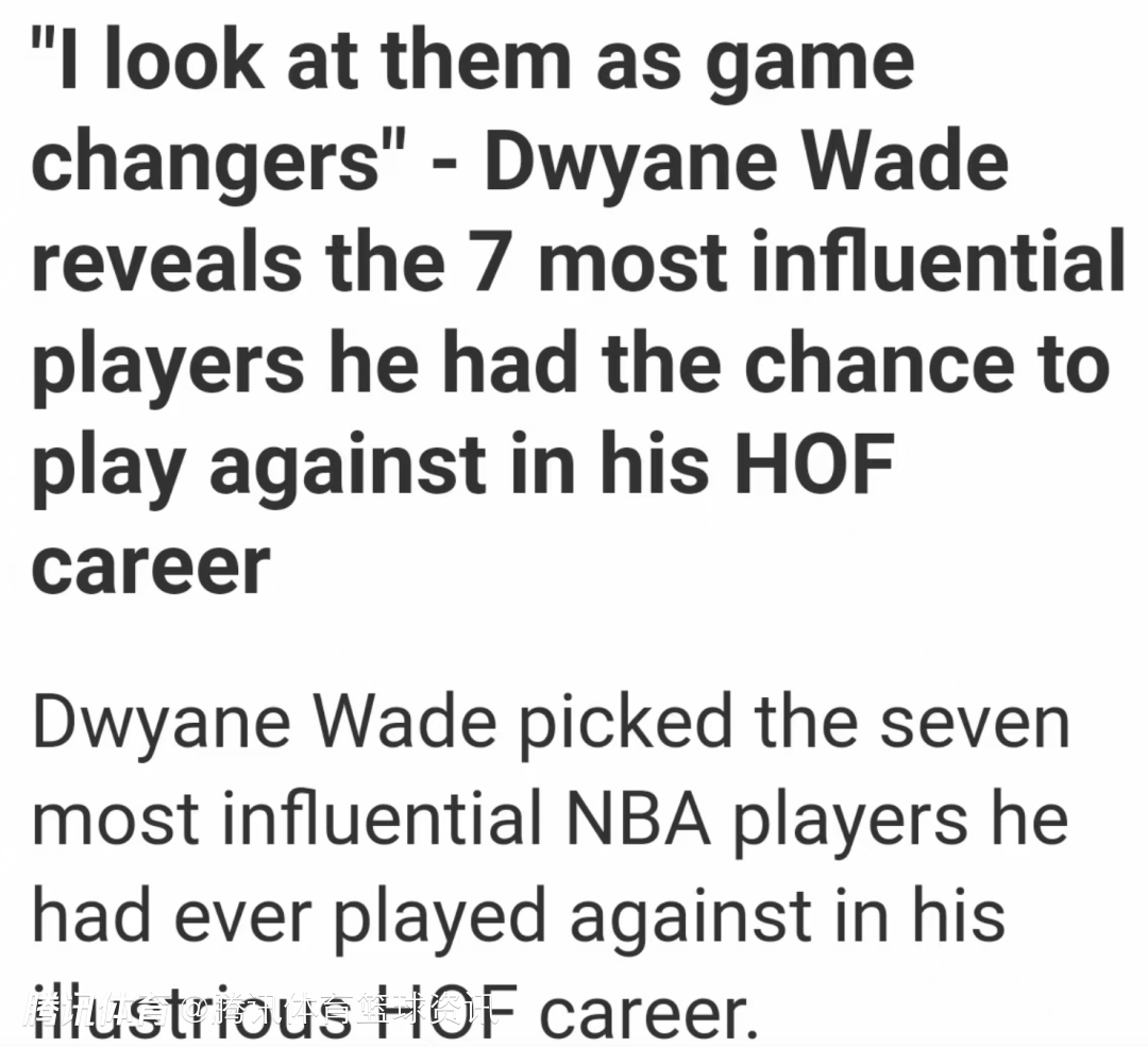 2025-07-30 10:50北京时间7月30日,NBA名宿韦德在直播节目中,选出了职业生涯中曾对阵过的7位最具影响力的球员。