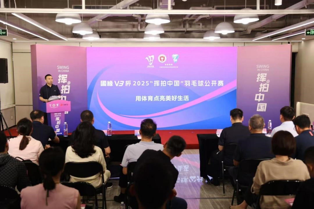2025-07-30 14:202025年7月29日下午,国缘V3杯2025“挥拍中国”羽毛球公开赛新闻发布会在国家体育总局训练局中体运动员之家举行。赛事由中国羽毛球协会指导、中体产业集团主办、中体空间集团承办、江苏今世缘酒业股份有限公司冠名、威克多体育用品有限公司赞助、中体竞赛管理有限公司运营。根据赛事安排,将分别在京津冀赛区天津、粤港澳赛区横琴、海峡西岸赛区福州、长三角赛区扬州、宁波、苏州、无锡四地和沿黄赛区包头举办城市赛,于12月在南京举办总决赛。
