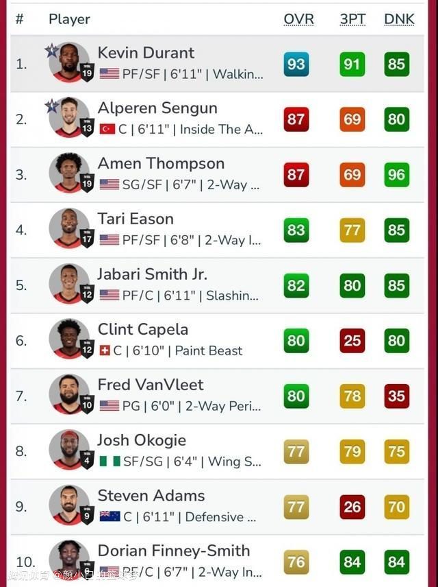 此前2K26游戏路透了火箭队多位球员的能力值:杜兰特93、阿门87、申京87,火箭全队有7人的2K能力值在80点以上,火箭队的阵容深度相当出色。