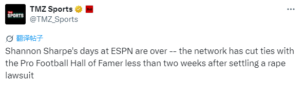 2025-07-31 07:20北京时间7月31日,据TMZ体育证实,香农-夏普在ESPN的日子已宣告结束。这家电视网在他就一起强奸诉讼达成和解后不到两周,与这位职业橄榄球名人堂成员终止了合作关系。
