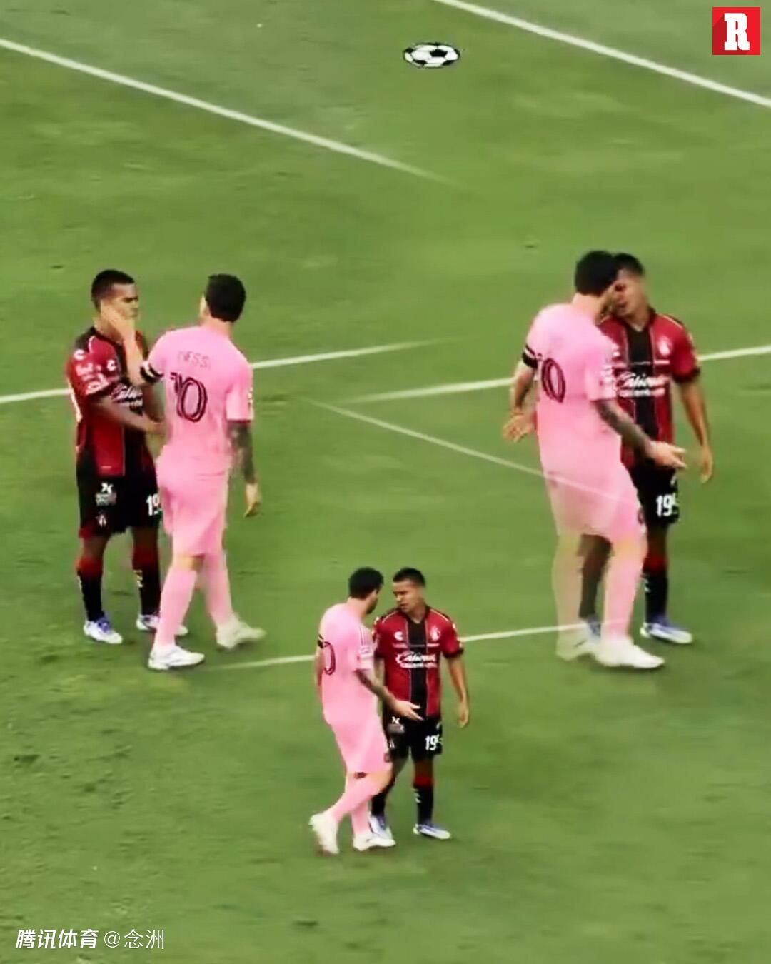 上半场,梅西被阿特拉斯的199号球员埃尔南德斯犯规。随后,两人发生口角,梅西碰了下对方球员脖子和脸,尤其是最后那一下,用巴掌摸了埃尔南德斯的脸,有挑衅的意思。