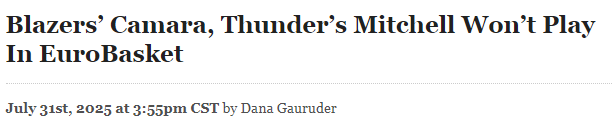 比利时篮协发布的公告进一步阐明了两人的决定: “阿贾伊-米切尔将不会随比利时队参加欧锦赛。经过一个漫长且高强度的赛季,再加上足部伤病,他决定休息调养,为新的NBA赛季做好准备。他依然有代表比利时出战的热情,并期待未来几年能有机会为国效力。卡马拉同样渴望为国家队征战,但今年夏天并非加入比利时队的理想时机,因为他正专注于在NBA职业生涯中迈出重要的下一步。”