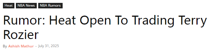 2025-08-01 07:00北京时间8月1日,据热火队记Anthony Chiang报道,热火队愿意交易特里-罗齐尔。