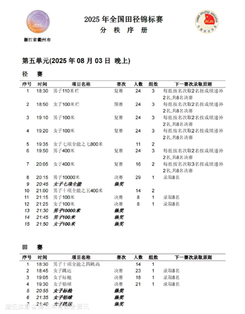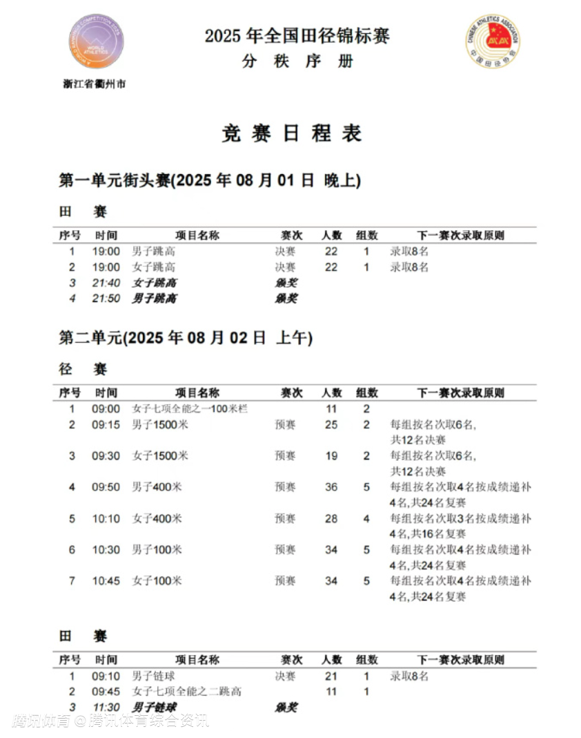2025-08-01 16:40北京时间8月1日,中国田径队官方发文,2025年全国田径锦标赛即将在衢州开赛,本次比赛分为街头赛和场地赛。